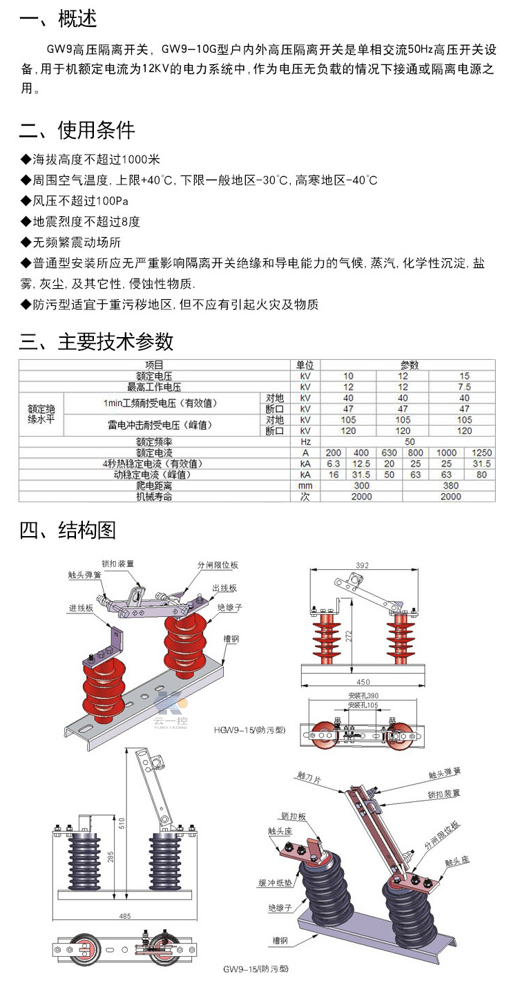 GW9-10/630A戶外高壓隔離開關(guān)