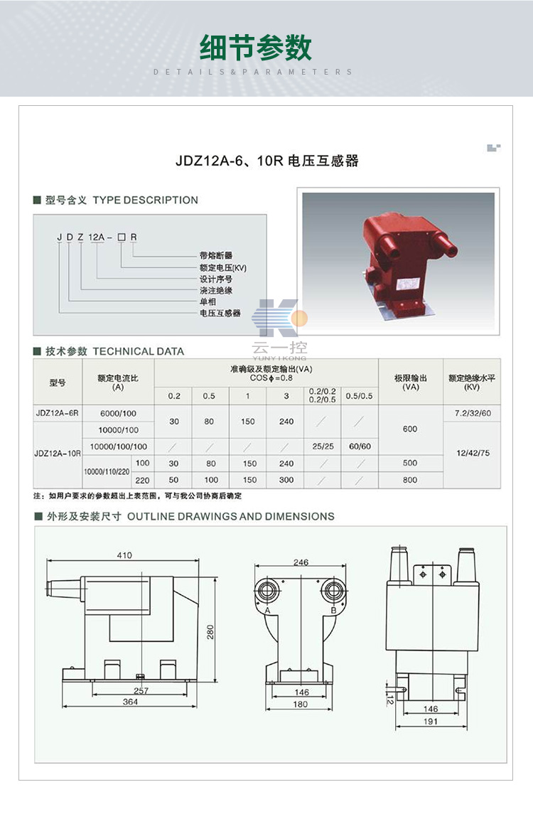 JDZ12A-10R環(huán)網(wǎng)柜充氣柜用電壓互感器